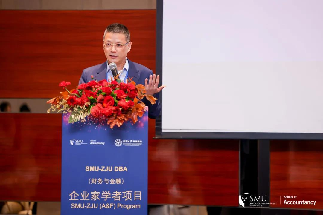 之后浙江大学管理学院专聘副院长窦军生教授及 DBA 学生代表浙商创投股份有限公司联合创始人华晔宇先生分别致辞,晚宴在轻松温馨的氛围中正式开始。晚宴得到了新加坡全球联系司和新加坡商会上海分会的大力支持,希望以这次活动为契机,所有嘉宾、DBA 同学和 SMU 校友未来有更多的合作机会,为中新两国友谊做出自己的贡献。